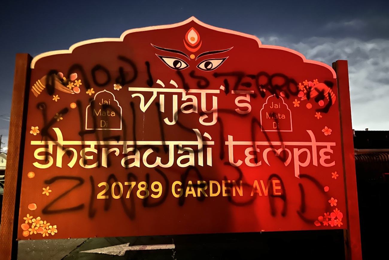 Another Hindu temple in California has been vandalized with anti-Modi graffiti, allegedly by Khalistan activists. The incident at Vijay’s Sherawali Temple in Hayward comes two weeks after the Swaminarayan Mandir Vasna Sanstha (SMVS) temple in Newark was sprayed with similar messages.