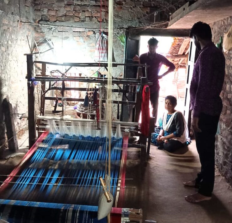 Mahato says that the state government has been enticing the younger weavers with several schemes like housing under the Karmashala Yojana for establishing the pit loom; loan under Mudra Yojana; and helping with the loom and accessories under Saranjam Yojana, Still, young weavers are not very enticed to be in this profession. Before Covid, a family used to earn ₹4,000 per sari after putting in 12-15 days of intense labor. Weaving is their sole vocation, but they cannot make more than two saris because of the laborious process. Now a family gets ₹3,000 wages for a sari with much less work, and they can make a maximum of four saris in a month. Every weaver has to report to a master weaver for capital, networking, and marketing.