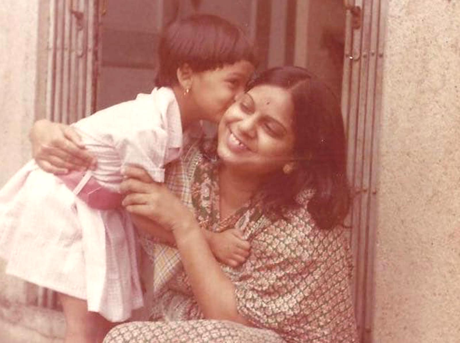 It was on these steps that my mother, my mummy, would sit, to send me off the school. She would stop whatever she was doing to walk me out the door and sit leisurely to wave me goodbye. All her chores would have to wait. I would bend and kiss her, a backpack on my shoulders and a water bottle in my hand. During one such moment, my father clicked a photo, one of my favorites to this day, which sits on my nightstand.